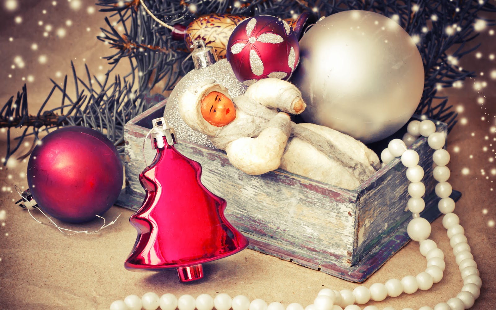 Caja de sorpresas de navidad con esferas y collar de perlas .